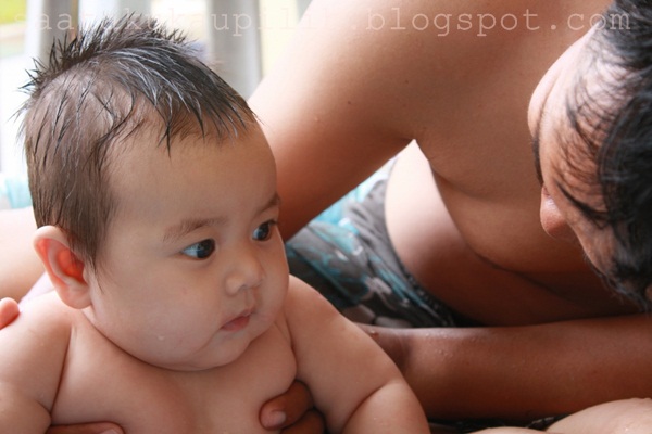 bapaknya masuk dah cukup2 jer kolam tu..cian maknya x dpt join..kalo 3 org sekali masuk..#PENGSAN kami yg menengoknya..huhuhu...geram tgk haikal ni..gebu..mcm ank sedara saya..rasa nak cubit2 pipi tu..